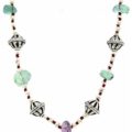This hand-made Necklace is created by Cornelia in Knysna, South Africa. Made in Sterling Silver with gemstones, this gorgeous Necklace hangs 20 inches long. It has a toggle closure. Most prominent among the gemstones in this Necklace are the green Fluorite stones. Enjoy a little of the beauty of South Africa as you wear this Necklace.