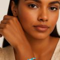 The sea blue color of the Mexican waters is the perfect color to remind you of your favorite spot in Mexico. This Bracelet is made in Sterling Silver with inlaid Amazonite stones throughout the Bracelet. Amazonite stones have that same color as the blue waters of Mexico. The Bracelet is hand-crafted in Mexico. It is 7.25 inches long.
