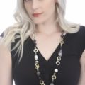 The Necklace can be worn long or doubled. Feel the love, energy, creativity and spirituality of Amethyst in this Italian Necklace. The Necklace is handmade with dark Sterling Silver that links horn, Pearls, Amethyst and numerous Quartz stones- all made by one of Italy’s best designers, Amlé. This Necklace has a clip that opens and closes the Necklace, making it easy to wear this Necklace long or doubled around your neck. Look hard- the clip fades right into the design of the Necklace. The Necklace is 33 inches long.