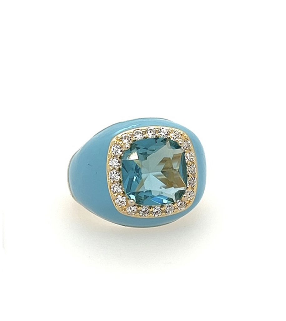 Baby Blue Enamel and Stone Ring