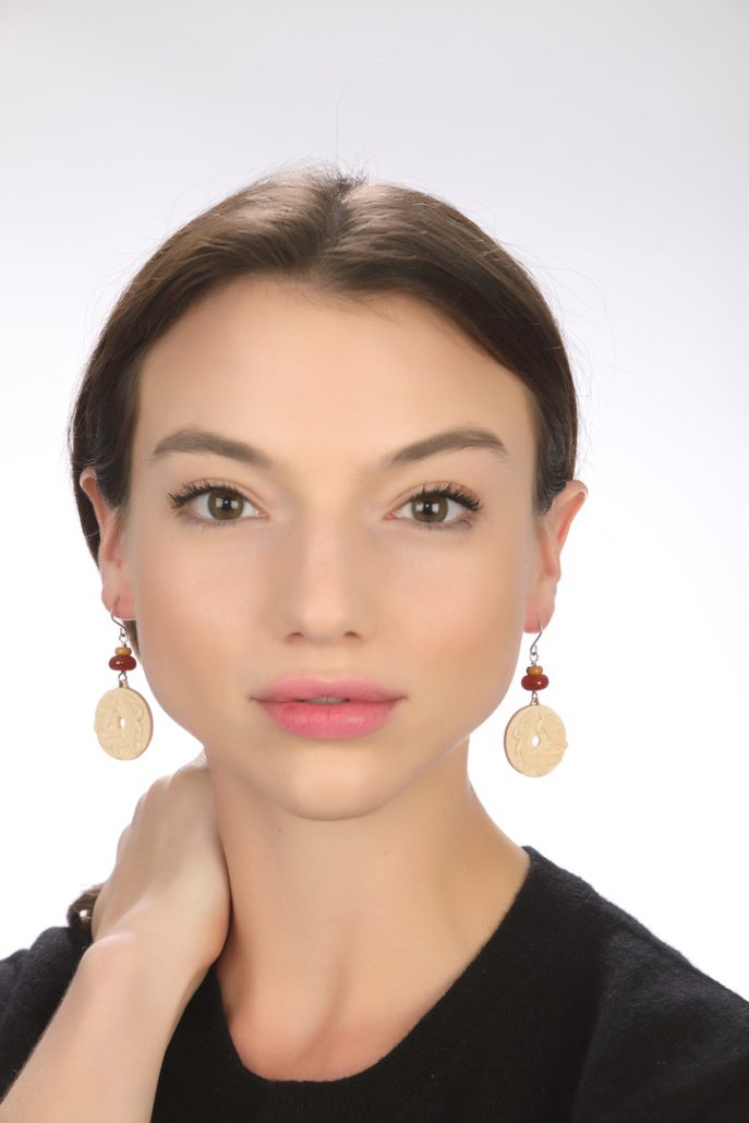 Tipping the Scale in Bali Ivory and Carnelian Earrings