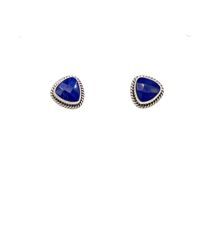 Lapis Lazuli is a beautiful cobalt blue colored stone. These Lapis Lazuli stones have been faceted and fit in a beautiful Sterling Silver frame with a cabled halo. The Earrings have a post back. These Earrings are made in Bali. You can almost feel the waters of Bali as you wear these Earrings.