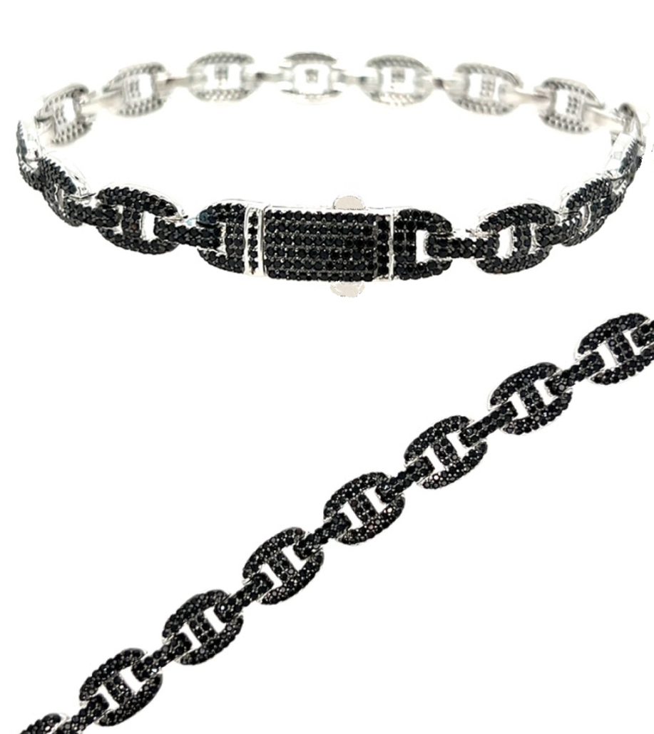 This Bracelet is filled with inlaid Black Onyx stones. Oh how we all love to wear black! This is the perfect compliment to everything! Throughout the links of this Black Onyx Bracelet are stones in a 7.25 inch surround. The Bracelet easily clasps in front. It is made in Turkey. This is an experience of the art of Turkey to enjoy.