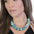 The Blue Opalina is said to look like peacock’s feathers. Both are so beautiful. The Blue Opalina stones are rare, found only in the Andes Mountains of Peru. It is said that amid emotional instability, the Blue Opalina stone is a balancing force. Others say that the Blue Opalina is a stone of creativity. Experience this incredible stone in a Necklace. The Necklace is adjustable, up to 18 inches long. The stones are strung on a sturdy wire that is coated with nylon. It is created by Resa Royale.