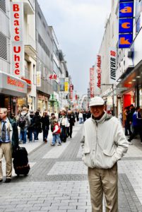 GERMANY: The invention of cologne in the early 18th Century is as much appreciated today as it was then. Here’s my Dad along a main street in Cologne, Germany.