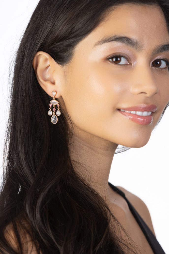 These French Earrings are made in Paris by Niiki Paris. The Earring are made in Moonstone and Rubies with a post back. Fall in love with the gemstones and the style of these Earrings, for every day and long into the night.