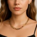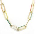 China creates this beautiful Sterling Silver Necklace with a gold overlay with links that have enamel accents along the outer edges in colors of yellow, green, white, turquoise, orange, and pink. The colored accents bring a real interest and creativity to this Necklace. The Necklace is as long as 17.5 inches long. The links can easily allow this Necklace to be clasped for a shorter look.