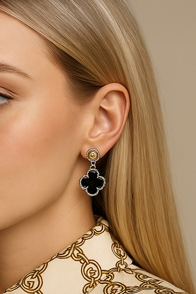 Hanging Black Onyx Quatrefoil Earrings