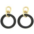 Black lacquered horn in a hoop attaches to interlocking gold plated Hoops on Sterling Silver. The Earrings have a large post back. They are handcrafted by Roberta, with the design company, Micheletto, in Milan, Italy.