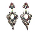 Crystals of every color are set in Sterling Silver with a gold metal overlay. It is almost as if the Earrings are a colorful representation of teardrops. The Earrings have a post back and hang 2 inches long.