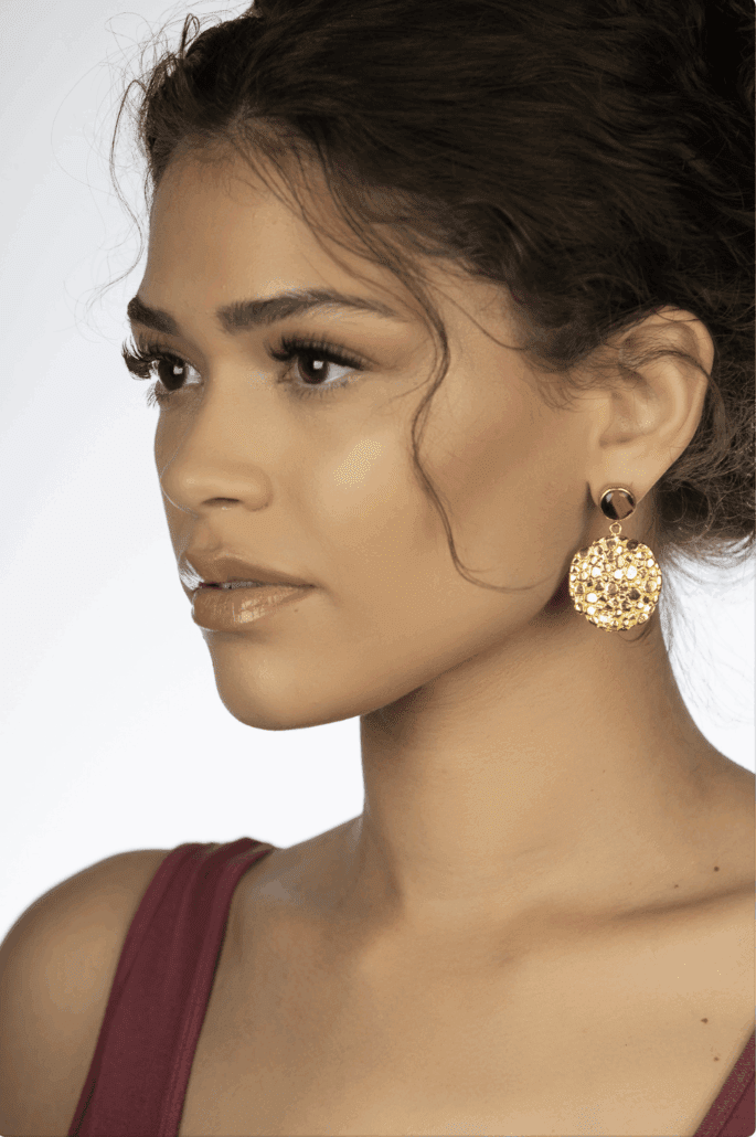 These Earrings are made in Sterling Silver with a gold metal overlay. The circular drop is accented with a Tiger’s Eye Stone. These Earrings have a post back. They are made by brothers, Ahmet and Murat, in Istanbul, Turkey.