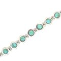 Turquoise stones fill the circled links of this Sterling Silver Bracelet. The Bracelet is 7.25 inches long. It is hand-crafted in Mexico. Experience the star-studded coastline of Mexico in this beautiful Mexican Bracelet.