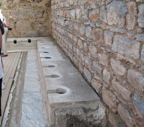 In the ancient city of Ephesus, Turkey- if you’ve “gotta go”- then here’s where you “go”. Yep- a public restroom! Take your seat right next to everyone else! For the best of Turkish jewelry, go to Resa Royale. ResaRoyale.com Copyright 2023. Resa Royale. All rights reserved.
